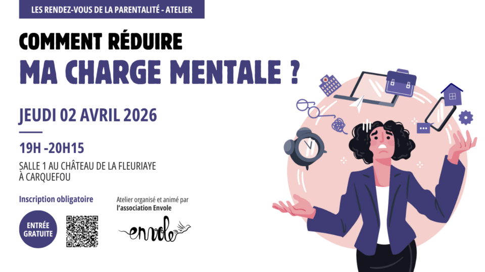 Notre association ENVOLE, collectif d’aide à la parentalité, anime un atelier sur la charge mentale des parents le 2 avril de 19h à 20h15.